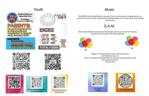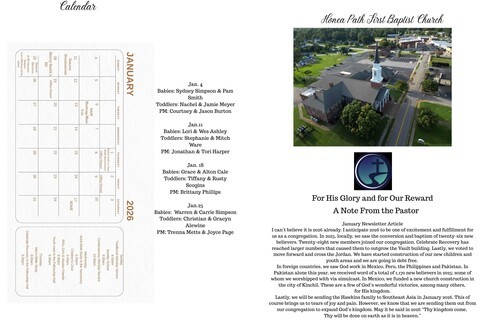 - Pastor Josh gave an update on the Southern Baptist Convention to be held in Orlando, FL in June 2026. He and his family are planning to attend and Ben and Jada Smith are going as well. Pastor Josh has enough funds in his Professional Development line item to cover his expenses. However, the Finance Committee has been asked to determine the best way to provide funding for the Smith’s accommodations. Approximately $2,000.00 will be needed. (TBD)